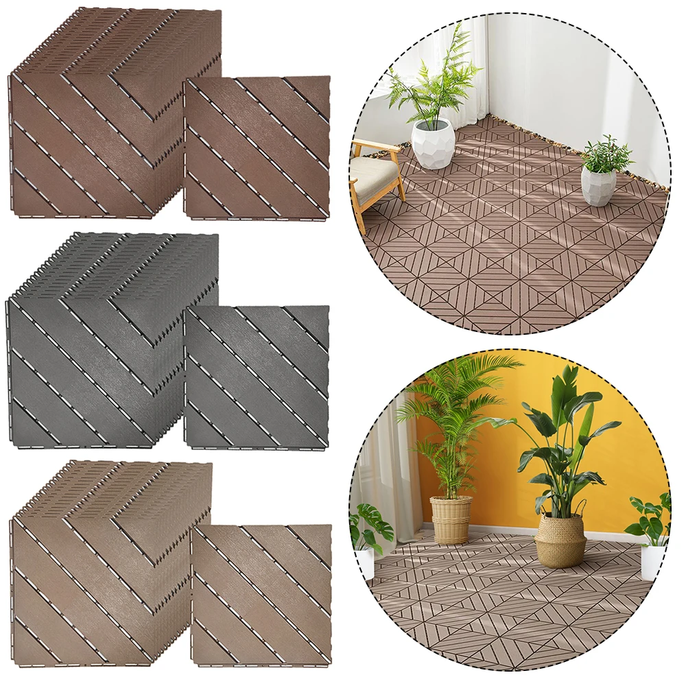1. Versatile 44-Piece Set: This set includes 44 premium deck tiles with a wood-look plastic design, each measuring 30 x 30 cm and featuring four diagonal slats. You can create various laying patterns, requiring 11 tiles per square meter.