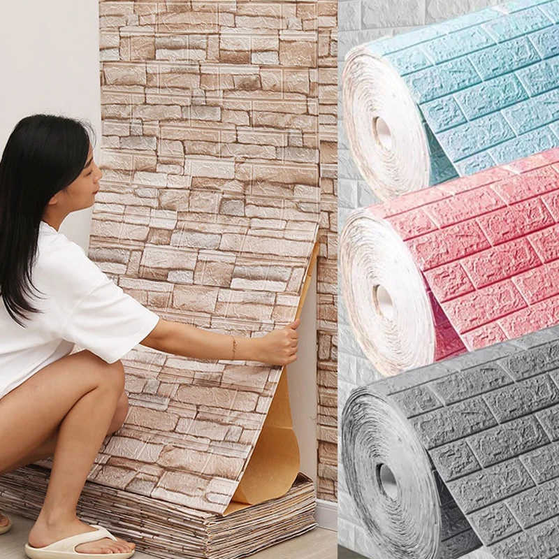 70cm*1m DIY Decoration Bedroom Oil-proof Adhesive Wall Wallpaper Waterproof Living Room Decoration Anti-fouling 3D Brick Pattern