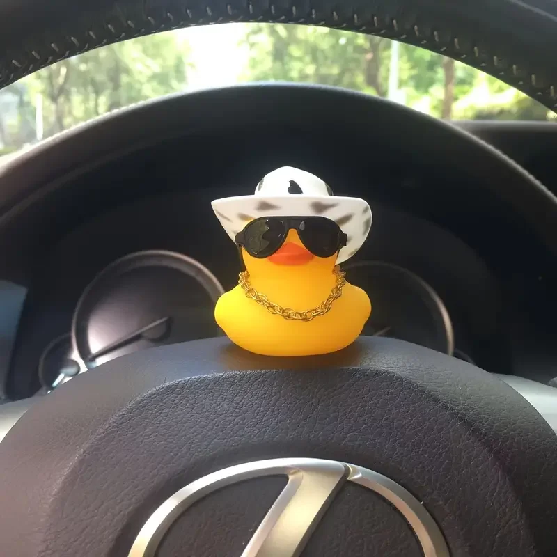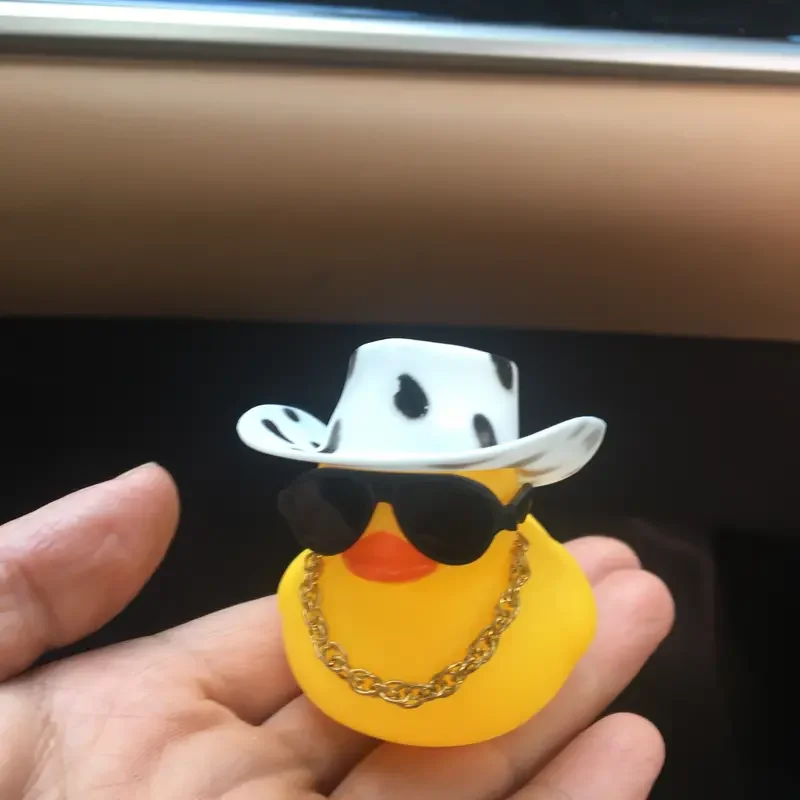A cowboy hat with rubber duck design for car accessories, a toy duck for car dashboard decoration – the perfect choice for Chris