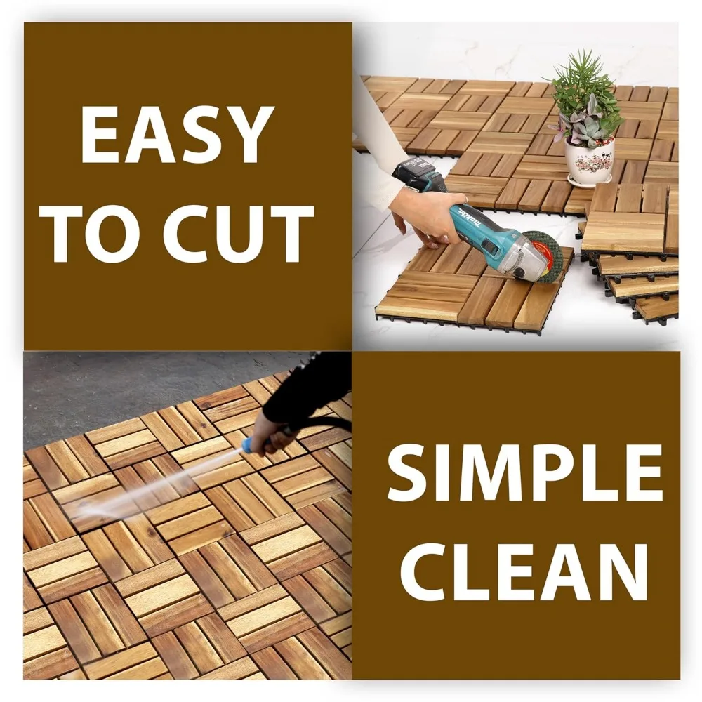 Effortless MaintenanceCrafted from a blend of wood and plastic, these interlocking deck tiles boast weatherproof properties, ensuring durability against the elements. Maintaining their pristine appearance is a breeze; simply give them a quick rinse with a garden hose to keep them looking fresh. |