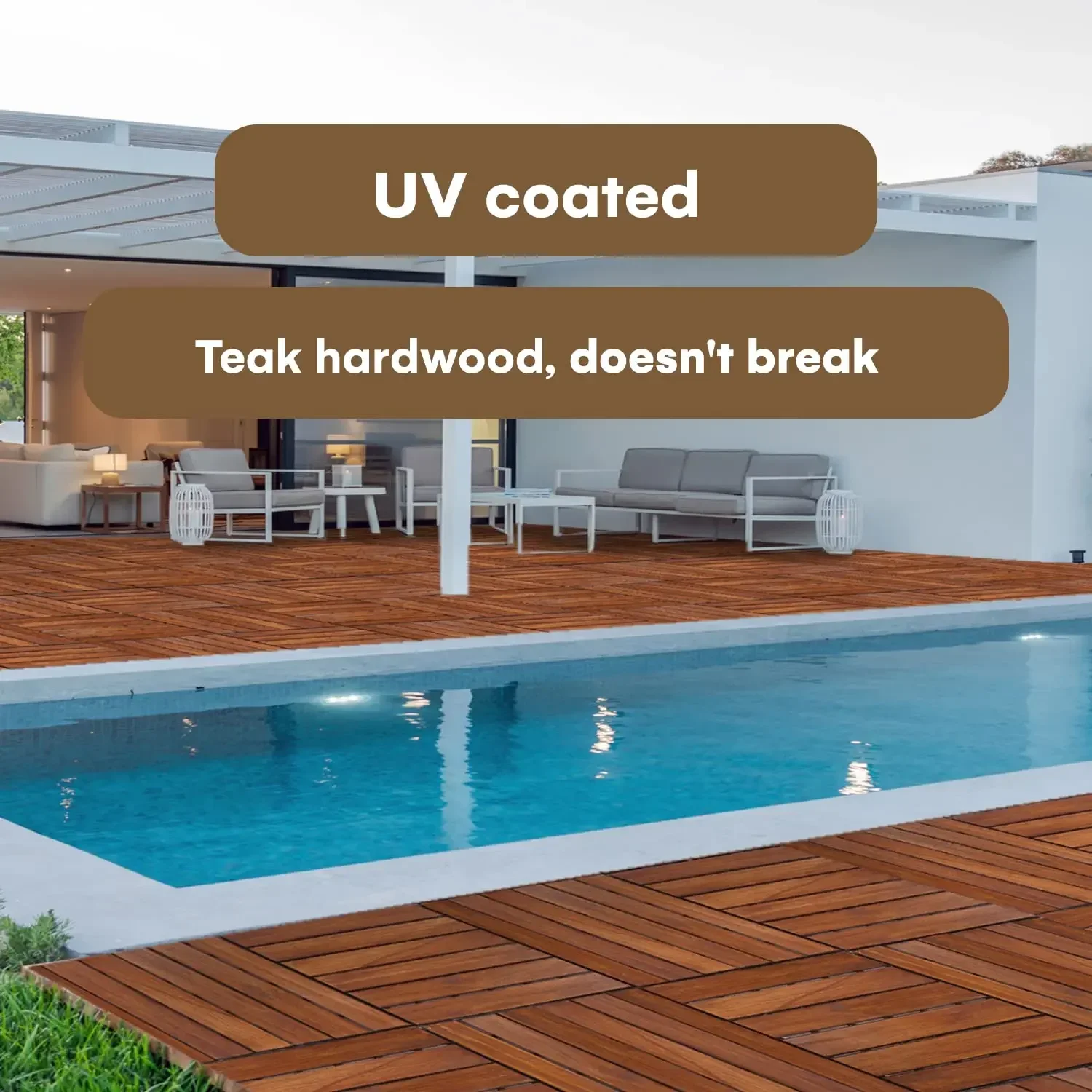 - TOUGH AND STURDY : Made of 100% solid teak wood, our pack of 10 tiles (12×12 inches each) have a PPC base that won’t break easily like our competition’s PE base.