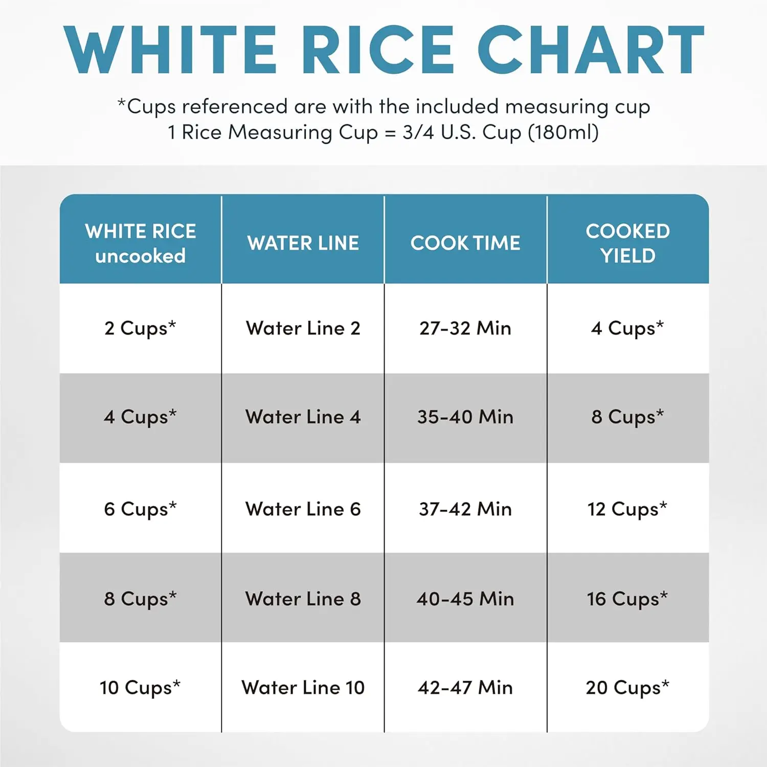 - Perfectly prepares 4 to 20 cups of any variety of cooked rice or grains